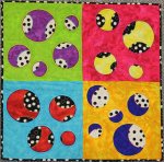 This quilt will challenge your eyes. By Paula Sween. Size 24 x 24.