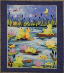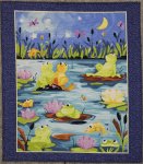 Whimsical frogs on their lily pad homes. By Carol Carpenter quilted by Char Gasker. Size 35 x 40.
