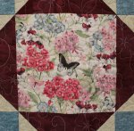 Butterflies and flowers in a dream scape. By Carol W Carpenter quilted by Linda Powell. Size 57 x 51.