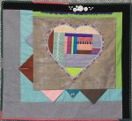Asymetrical and eclectic quilt for your table. By Fran Walthall. Size 28 x 26.