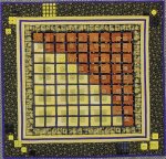 Math fun with fabric with handmade buttons and squares. By Karen Fisher. Size 26 x 26